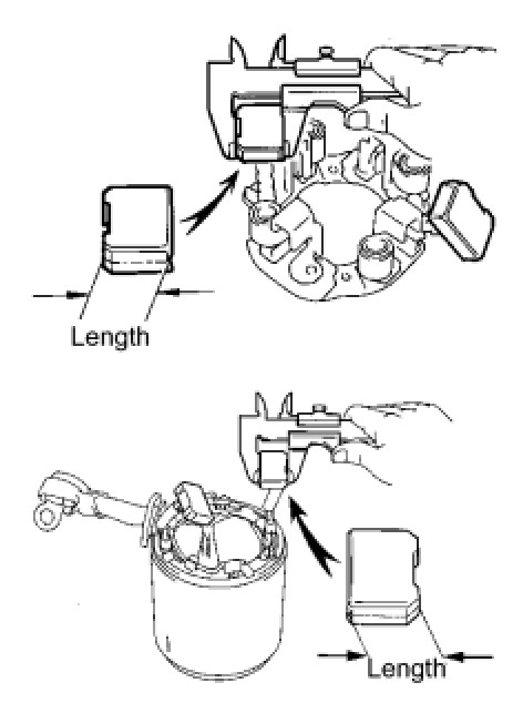 If the length is less than the minimum, replace the brush holder assembly and starter yoke assembly.