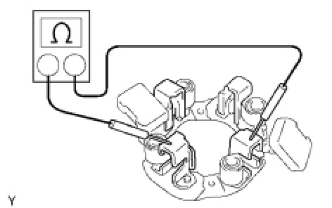 (1) Check the resistance between the positive (+) and negative (-) brush holders.