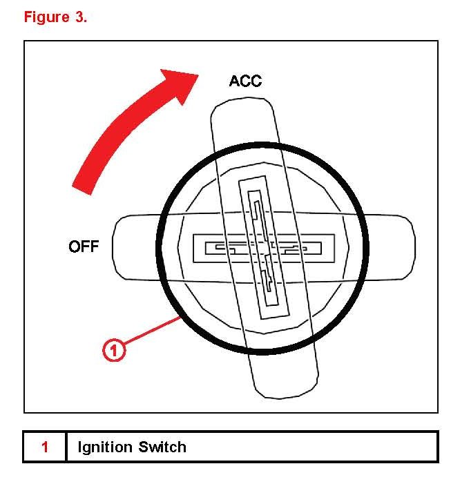 1. Insert the key in the ignition switch and turn it to the ACC position. Within 30 seconds perform steps 2 and 3.