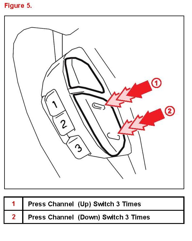 3. After releasing the MODE switch press the channel up switch 3 times and then the channel down switch 3 times within 5 seconds.