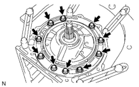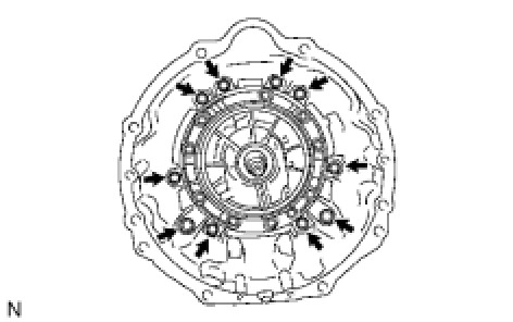 (a) Remove the 10 bolts from the transmission case.
