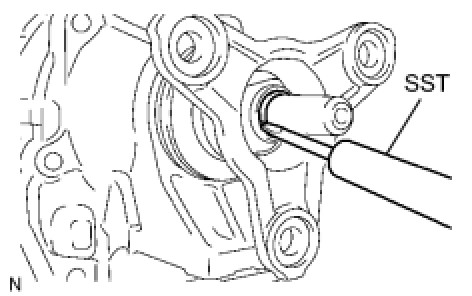 (a) Using a screwdriver, pry out the oil seal.