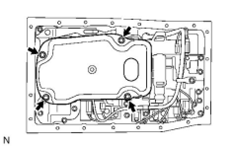 (b) Remove the 4 bolts and valve body oil strainer from the valve body.