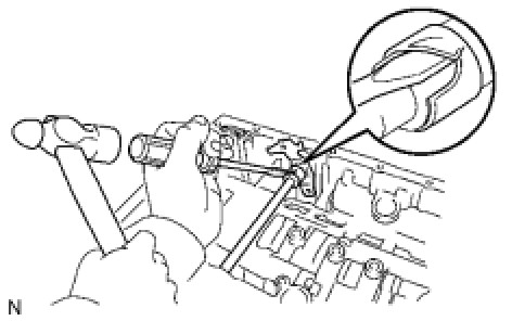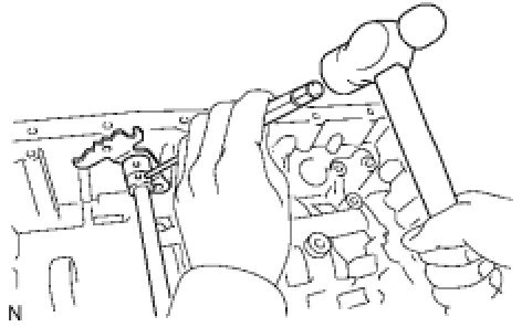 (b) Using a pin punch and hammer, drive out the spring pin.