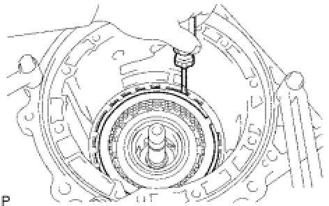 (a) Using a screwdriver, remove the brake snap ring from the transmission case.