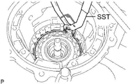 (a) Using SST, remove the snap ring.