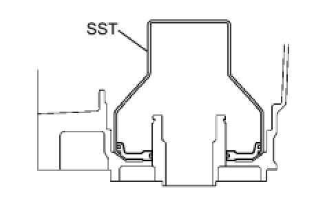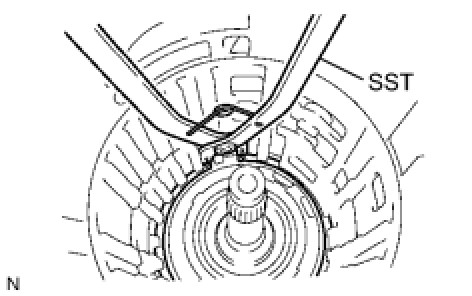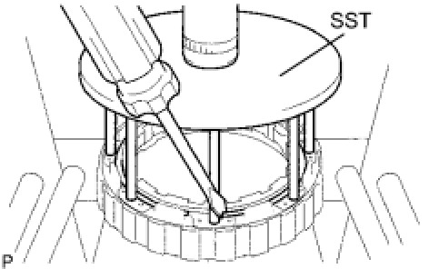 (a) Place SST on the 1st and reverse brake return spring and compress the brake return spring.