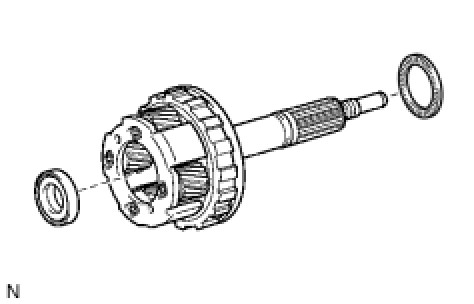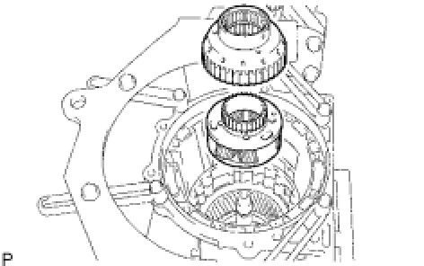(a) Remove the 1-way clutch and planetary carrier thrust washer from the transmission case.