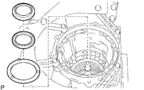 (b) Remove the thrust needle roller bearing, thrust bearing race and planetary carrier thrust washer from the transmission case.