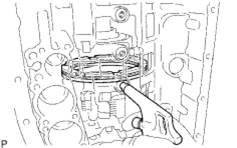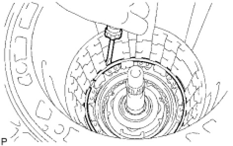 (a) Using a screwdriver, remove the brake piston return spring snap ring from the transmission case.