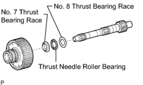 (a) Remove the No. 8 thrust bearing race, thrust needle roller bearing, No. 7 thrust bearing race and planetary ring gear flange from the intermediate shaft.