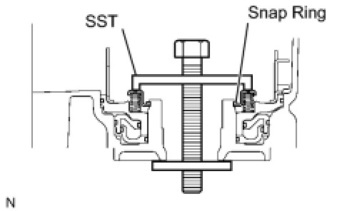 (a) Using SST and a press, compress the return spring and remove the brake piston snap ring.