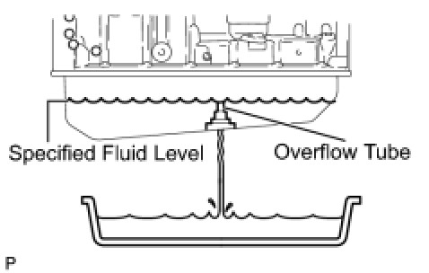 (c) Fill the transmission through the refill hole until fluid begins to trickle out from the overflow tube.