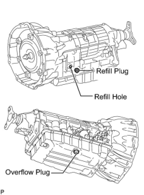 - If the transmission hose, output shaft oil seal and/or radiator is replaced, remove the 2 bolts, transmission case cover and refill plug, and then proceed to the "FILL TRANSMISSION" procedures.