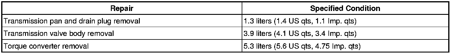 (a) Fill the transmission with the amount of fluid listed in the table below.