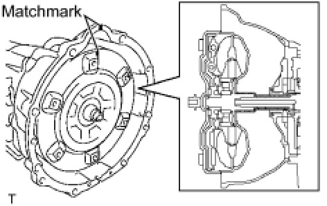 NOTE: Do not push on the torque converter when aligning the matchmarks.