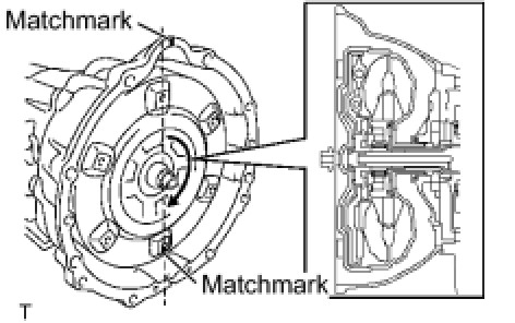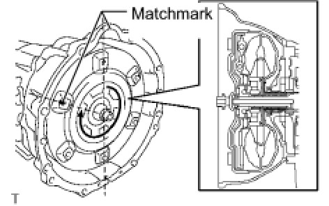 (a) While aligning the matchmarks on the transmission case and torque converter clutch, engage the splines of the input shaft and turbine runner.