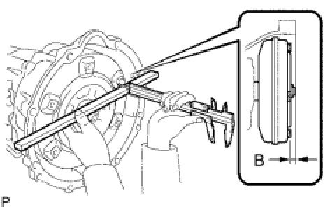 (d) Using a vernier caliper and straightedge, measure dimension A between the transmission and the end surface of the drive plate.