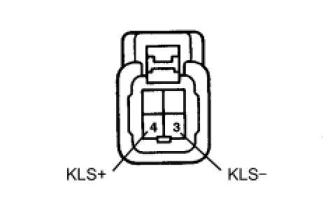 (b) Connect the battery's positive (+) lead to terminal 4 (KLS+) and the battery's negative (-) lead to terminal 3 (KLS-). Check that the operating noise of the solenoid can be heard.