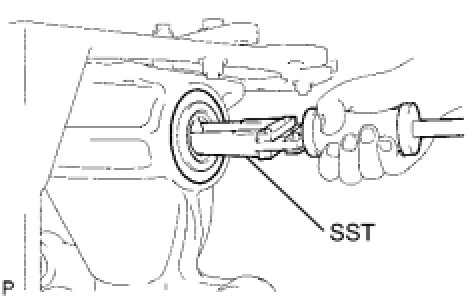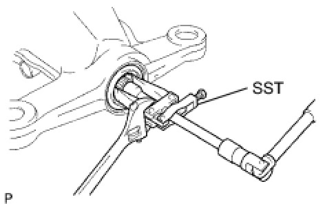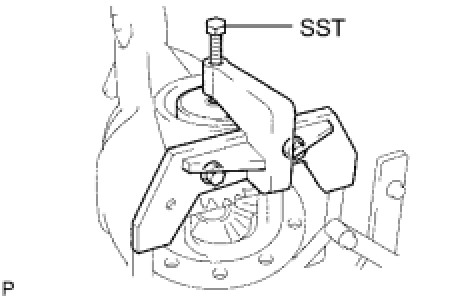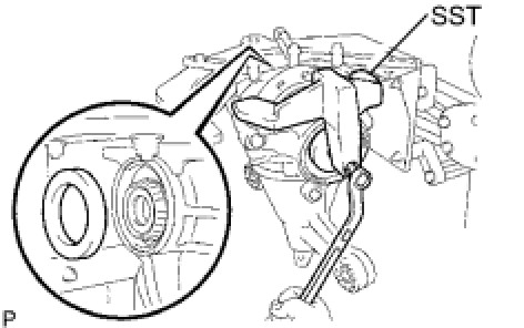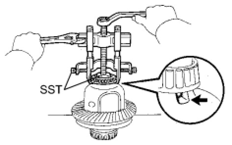 - Hook the claws of SST to the bearing inner race of the differential case.