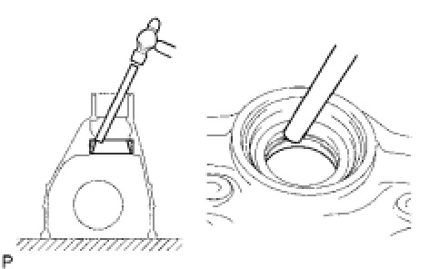 HINT: Tap in the outer race until half of the side gear shaft shaft snap ring groove of the differential carrier can be seen.
