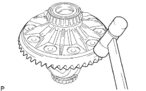 (c) Using a plastic-faced hammer, tap on the ring gear to separate it from the differential case.