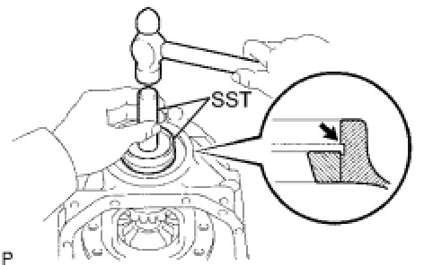 (b) Using SST and a hammer, tap in the outer race on the drive pinion side.