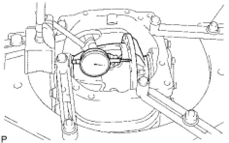 - If the backlash is not within the specification, replace the rear differential case sub-assembly with a new one.