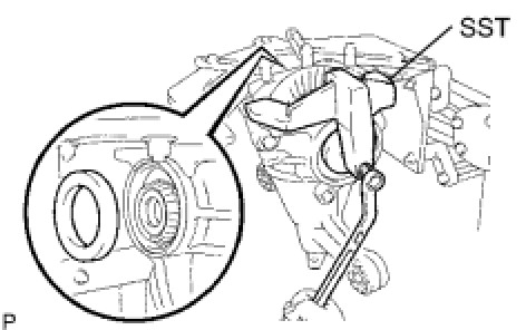 (b) Using SST and a hammer, tap the oil seal into the rear differential carrier.