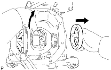 (a) Raise the ring gear side of the differential case slightly to remove the drive pinion side outer race.