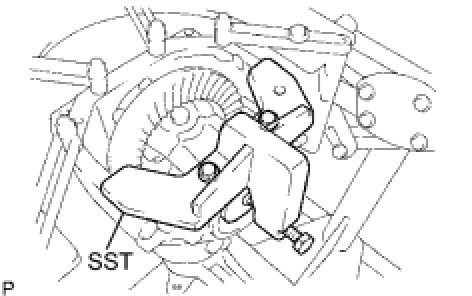 (a) Using SST and a hammer, create a clearance between the side bearing (outer) on the ring gear and snap ring.