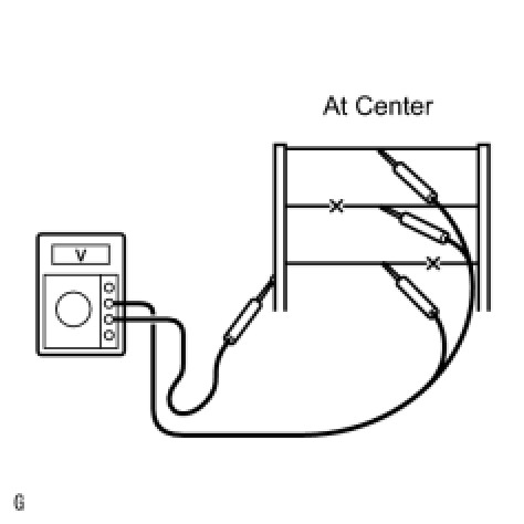 (c) Measure the voltage at the center of each defogger wire as shown in the illustration.