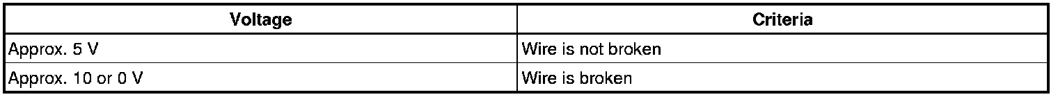 HINT: If there is approximately 10 V, the wire may be faulty between the center of the wire and the wire end on the battery side. If there is no voltage, the wire may be faulty between the center of the wire and the wire end on the ground side.