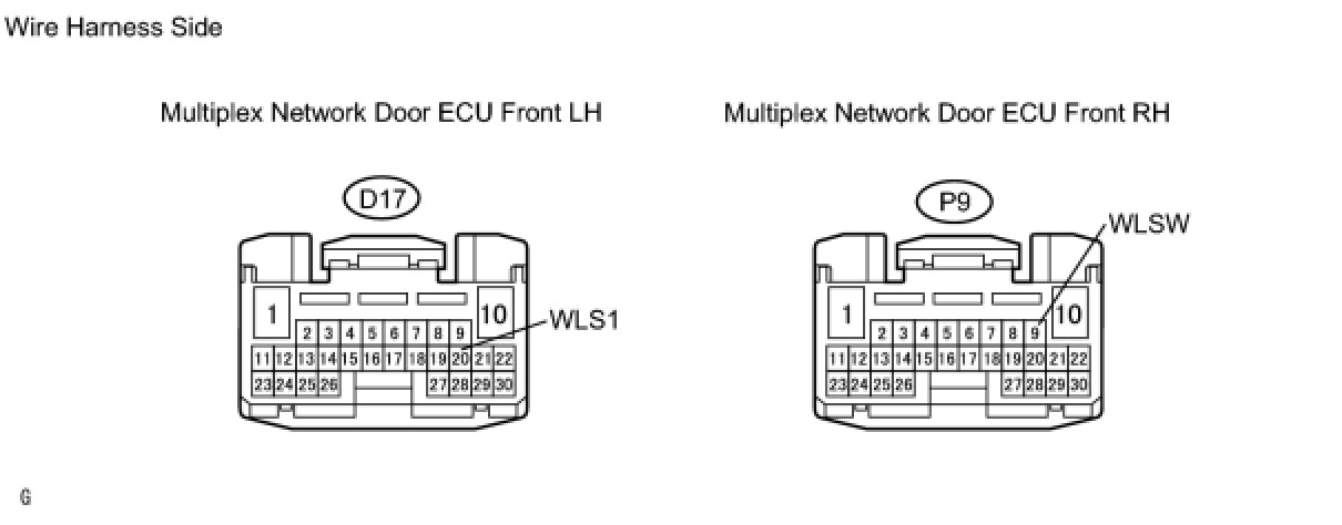 4. CHECK WIRE HARNESS (DOOR ECU FRONT LH - DOOR ECU FRONT RH)