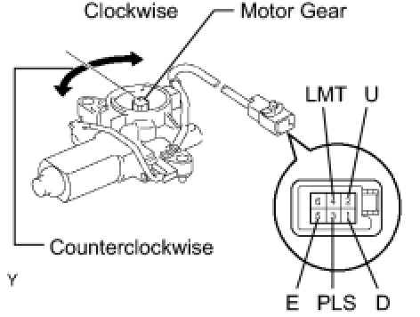 - Be sure not to apply battery voltage to terminals 3 (PLS), 4 (LMT) and 5 (E) of the power window regulator motor RH connector, because it might damage the pulse sensor and the limit switch.