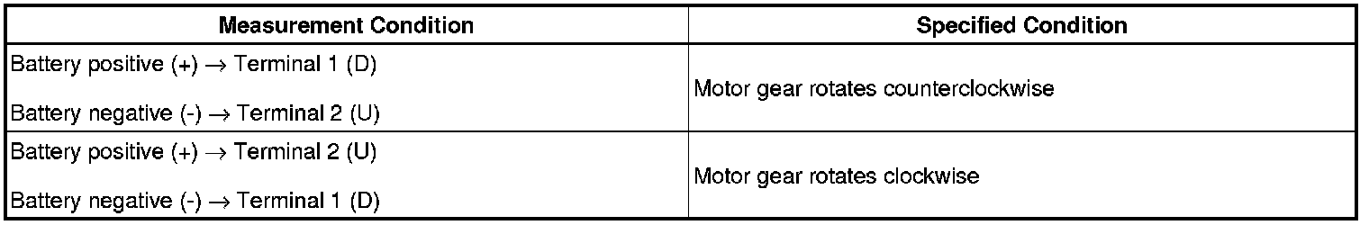 (1) Check that the motor operates smoothly when the battery voltage is applied to each terminal of the connector.