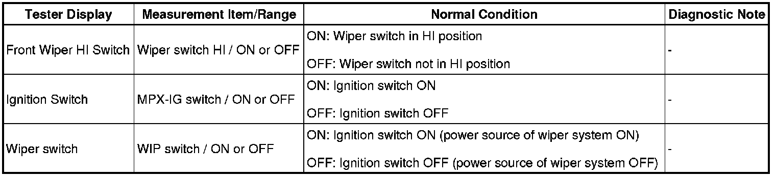WIPER AND WASHER SYSTEM: DATA LIST / ACTIVE TEST