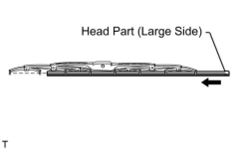 HINT: Install the wiper rubber so that the head part (large side) of the wiper rubber faces the arm axle side.