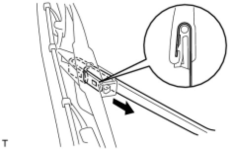 (b) Remove the wiper rubber in the direction indicated by the arrow in the illustration.
