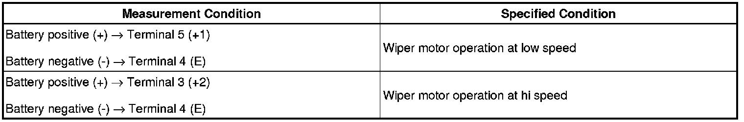 (1) Apply battery voltage to the wiper motor connector and check operation of the wiper motor.