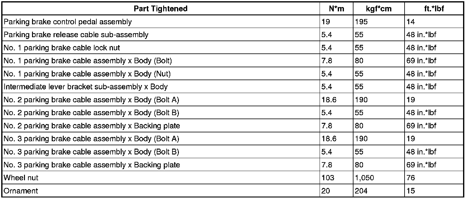 SERVICE SPECIFICATIONS: PARKING BRAKE: TORQUE SPECIFICATIONS