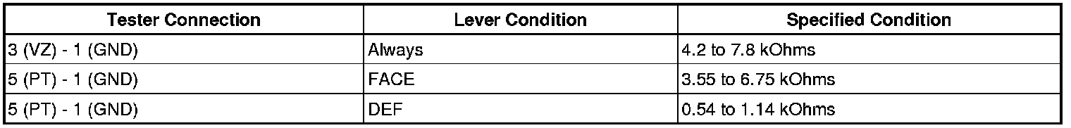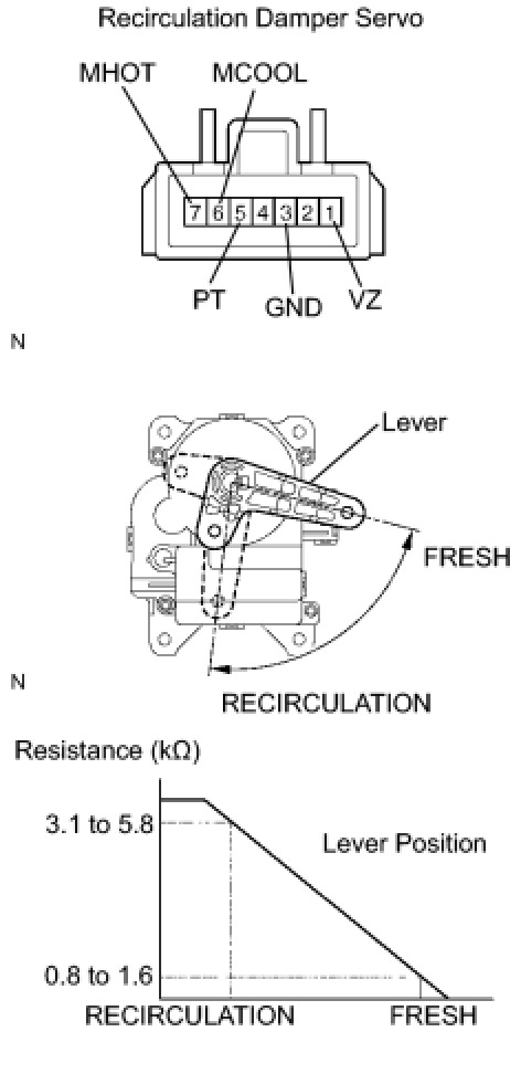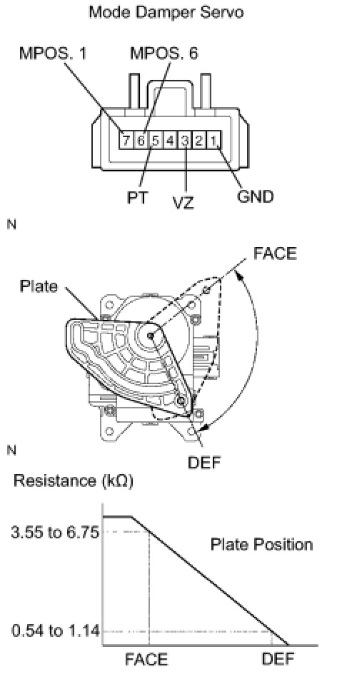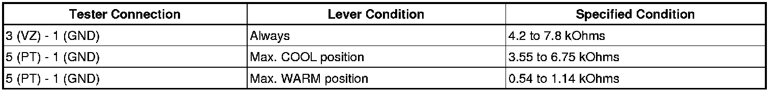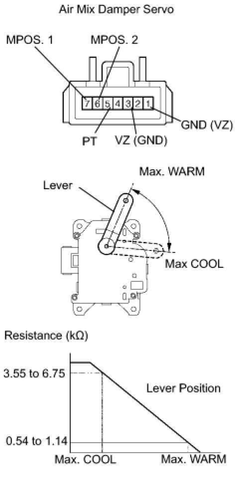 - As the air mix damper servo moves from the cool side to warm side, the resistance decreases gradually without interruption.