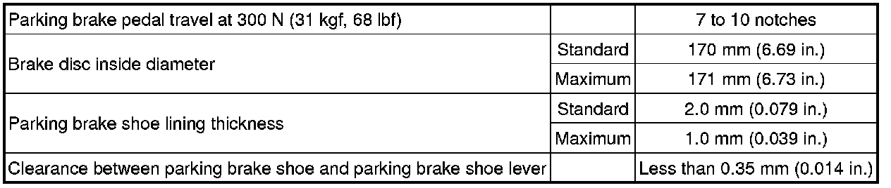 SERVICE SPECIFICATIONS: PARKING BRAKE: SERVICE DATA