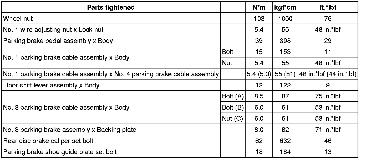 SERVICE SPECIFICATIONS: PARKING BRAKE: TORQUE SPECIFICATIONS
