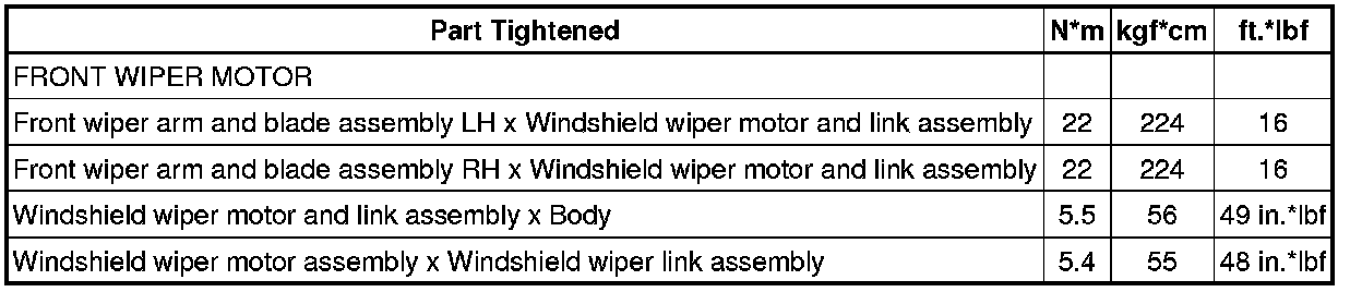 SERVICE SPECIFICATIONS: WIPER AND WASHER: TORQUE SPECIFICATIONS