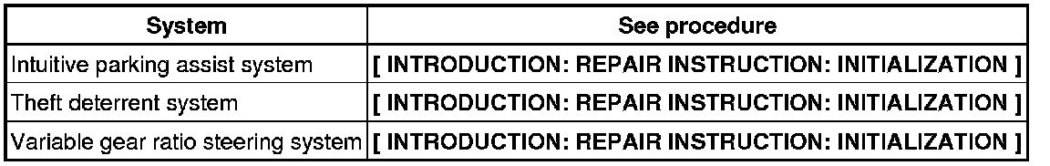When disconnecting the cable from the negative (-) battery terminal, initialize the following systems after the cable is reconnected.