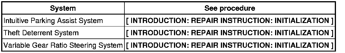 When disconnecting the cable from the negative (-) battery terminal, initialize the following systems after the cable is reconnected:
