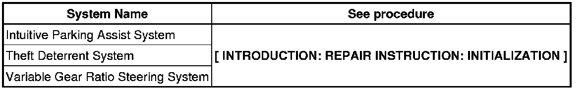 When disconnecting the cable from the negative (-) battery terminal, initialize the following systems after the cable is reconnected.