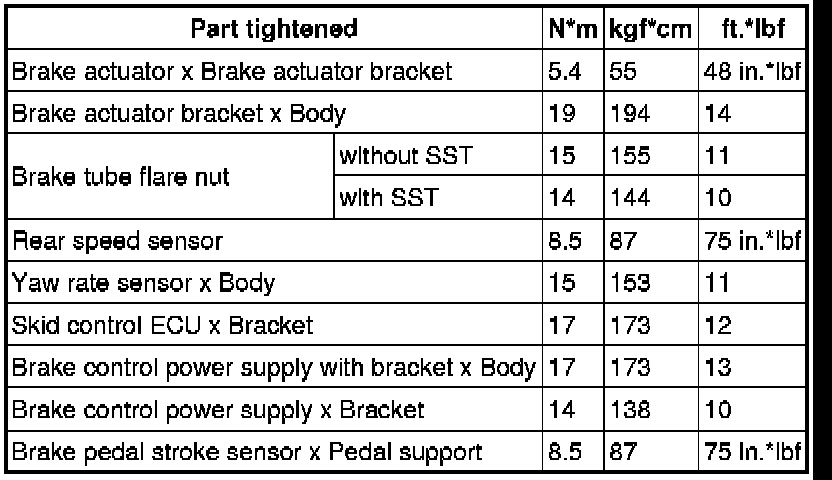 SERVICE SPECIFICATIONS: BRAKE CONTROL: TORQUE SPECIFICATIONS