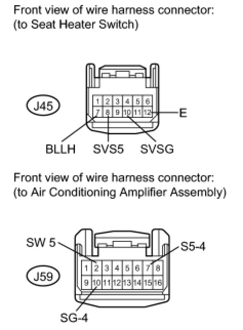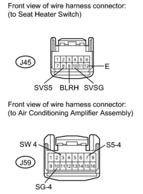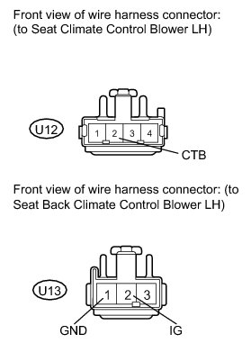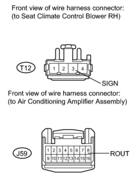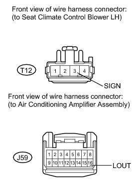 The A/C amplifier assembly receives seat heater switch position signals when the engine switch is on (IG), and then transmits airflow amount signals to each seat climate blower.